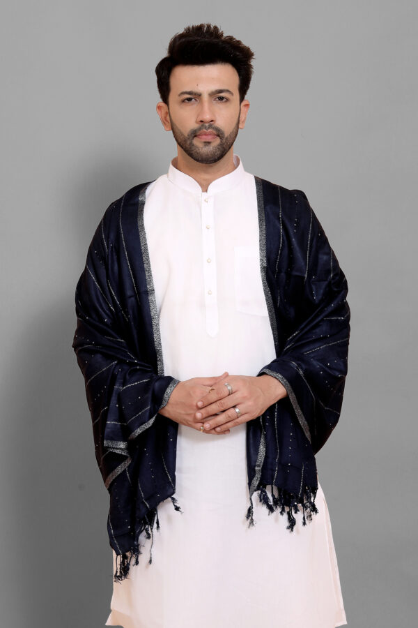 Black Embellished Box Sequence Dupatta For Men