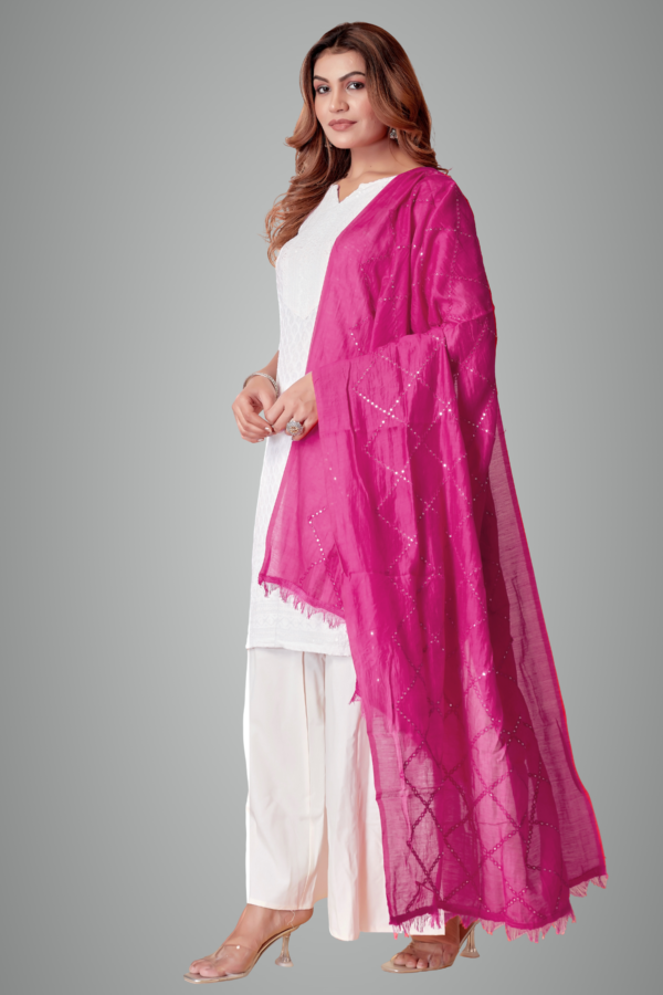 Dark Pink Chanderi Box Sequin Festive Dupatta For Women