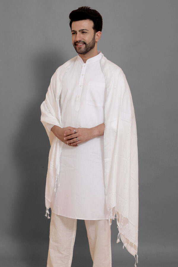 White Pure Elegant Minimal Style Sequence Shawl For Men