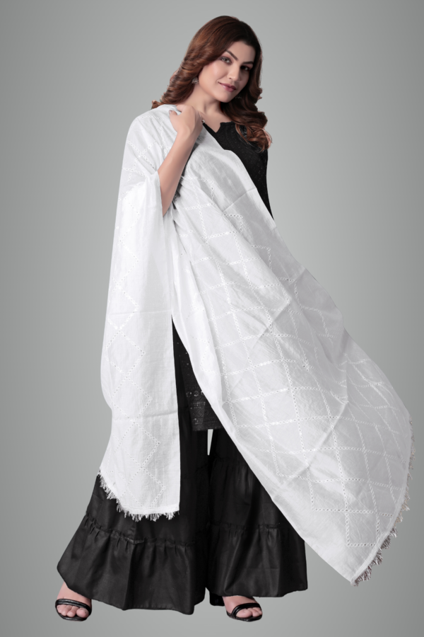 White Chanderi Box Sequin Festive Dupatta For Women