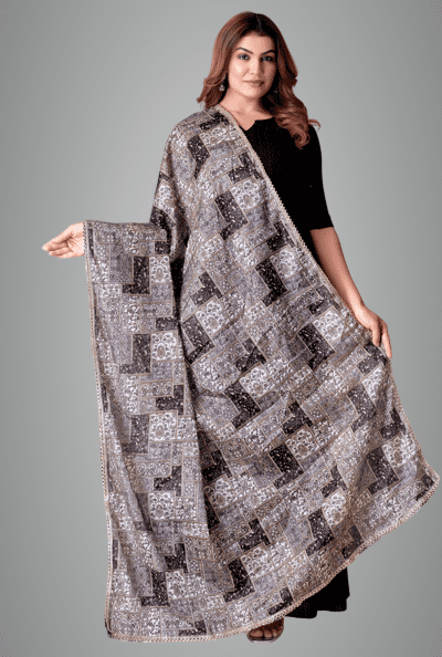 Black & Gray Ethno Shine Party Dupatta For Women